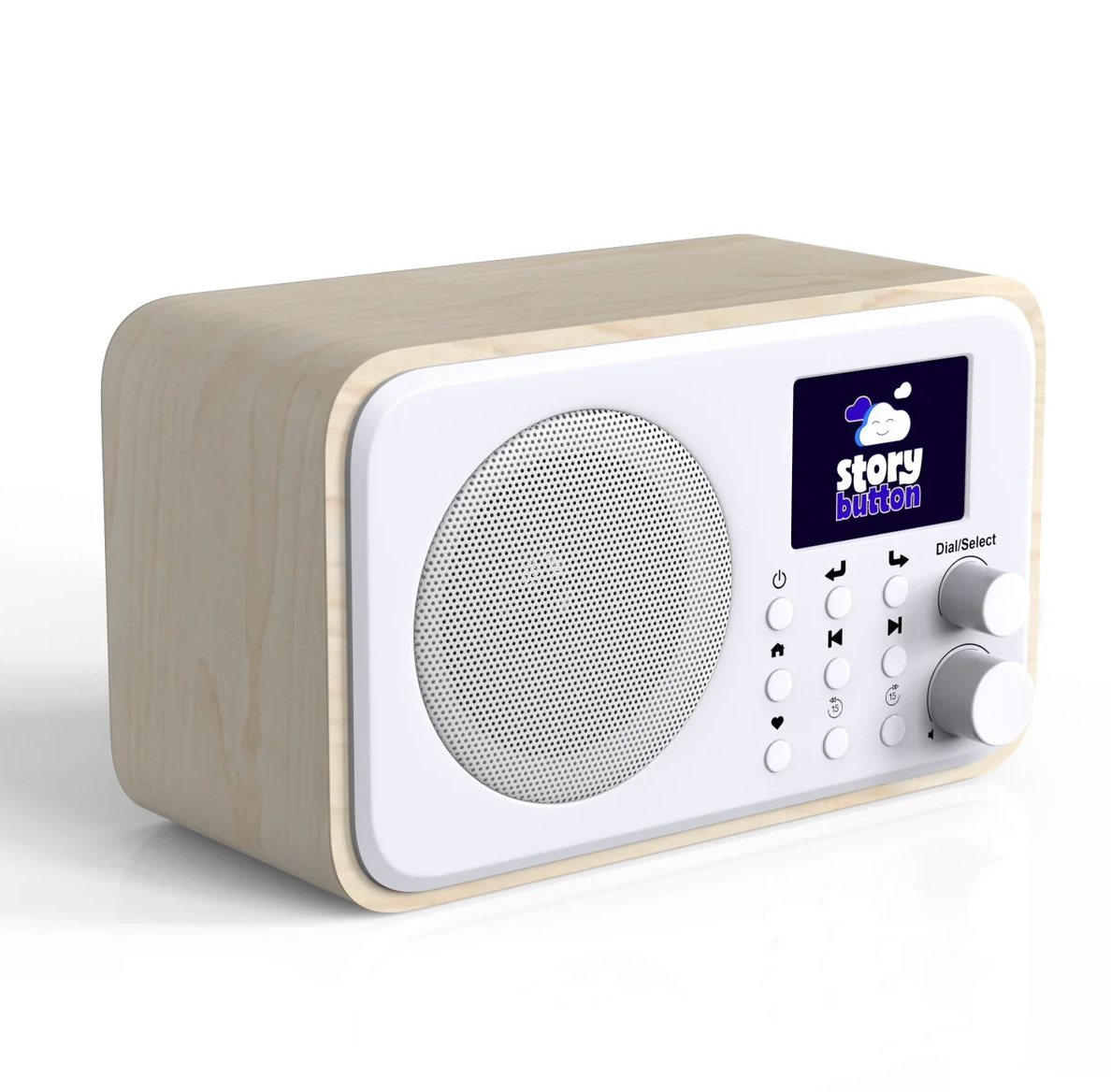 Storybutton is a compact, portable audio player that allows children to listen to a vast library of content without the need for screens. Resembling a modern take on the classic radio, it offers easy access to a curated selection of kid-friendly podcasts and stories. The device comes in three colors — white, green/black, and purple — catering to different preferences.
